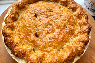 Supersize Me! Beef, caramelised onion and Stilton pie with pickled walnuts