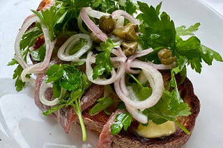 Supersize Me! Anchovy toast with St. John-style parsley salad